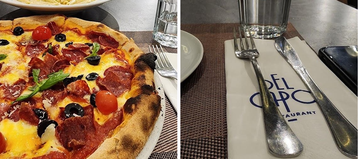 Del Capo Restaurant offers authentic Mediterranean cuisine, featuring dishes such as pizza, grilled meats, seafood, and delicious desserts.